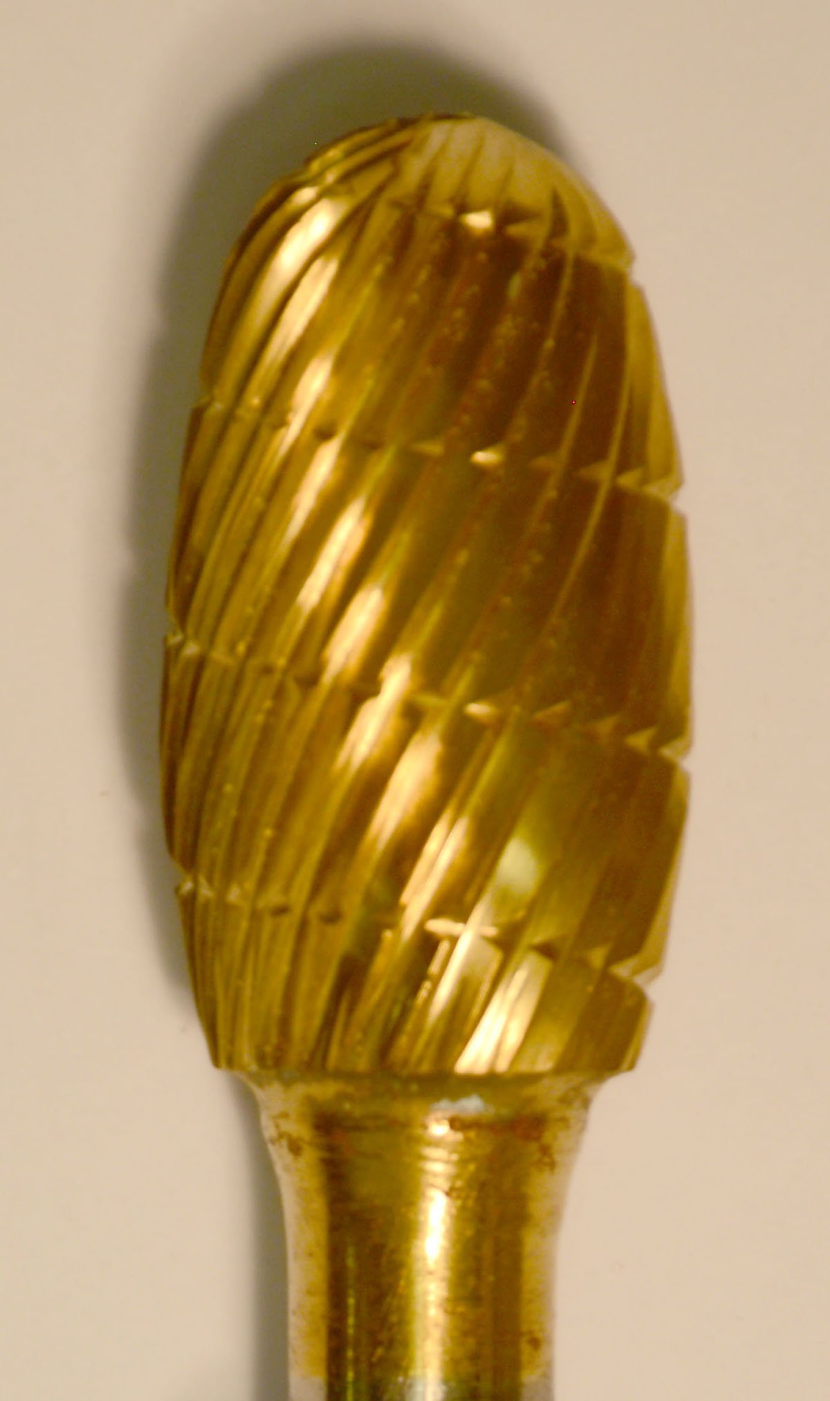 Buffalo Dental Gold Cap Burs, 1/4″ Shank, 1/2″ Head Lathe Burs 1/2" Egg (D1/2) TNT-Coated Dual Cut Regular HP Carbide Bur
