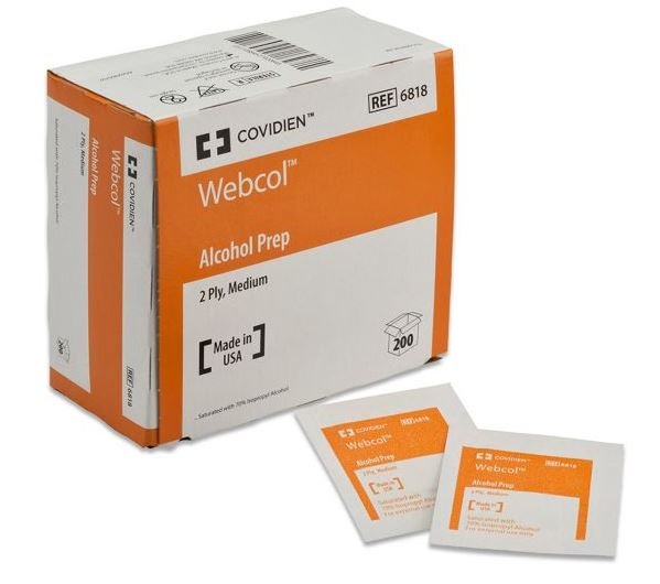 CARDINAL HEALTH WEBCOL ALCOHOL PREPS – Large, 2-Ply , 200/bx