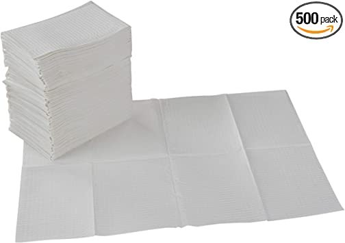 Safe-Dent- Patient Bibs, 2 ply tissue/1 ply plastic, 13″x 18″, WHITE, 500 pcs box